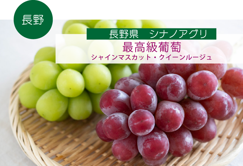 長野県内でもまだ流通の少ない貴重なクイーンルージュやそして人気の高いシャインマスカットのセットです -