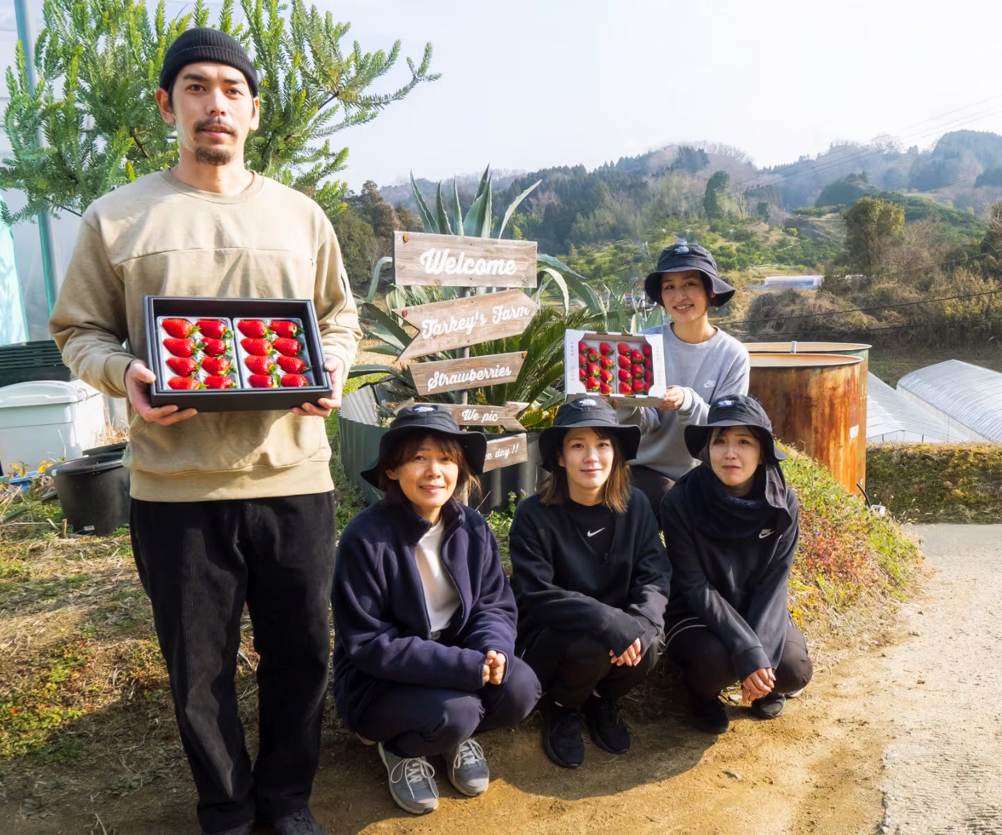 TARKEY'S FARM/米嶋農園は 奈良県高市郡 明日香村の苺農家です。両家共に農家では ありませんでしたが家族で作ったものがお客様 へ提供できる農業に魅力を感じ2019年苺農家 として新規就農しました。夫婦だけでなく協力してくれる家族と共に、一粒一粒に輝きを込め 私たちの苺に思いを寄せて頂けるよう苺作りに励んでおります。